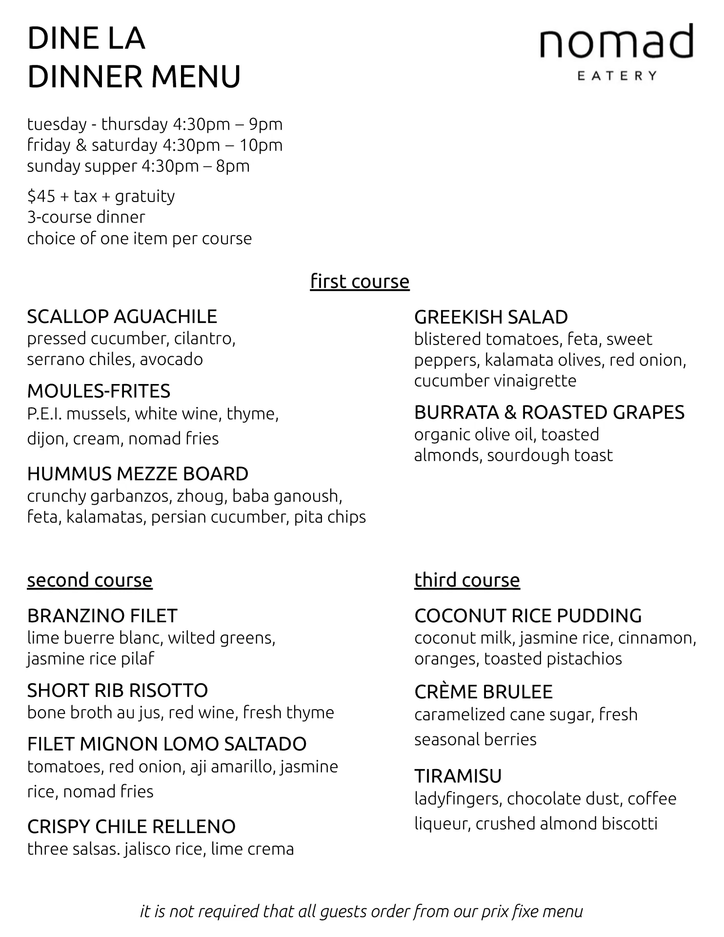 Dinner Menu
