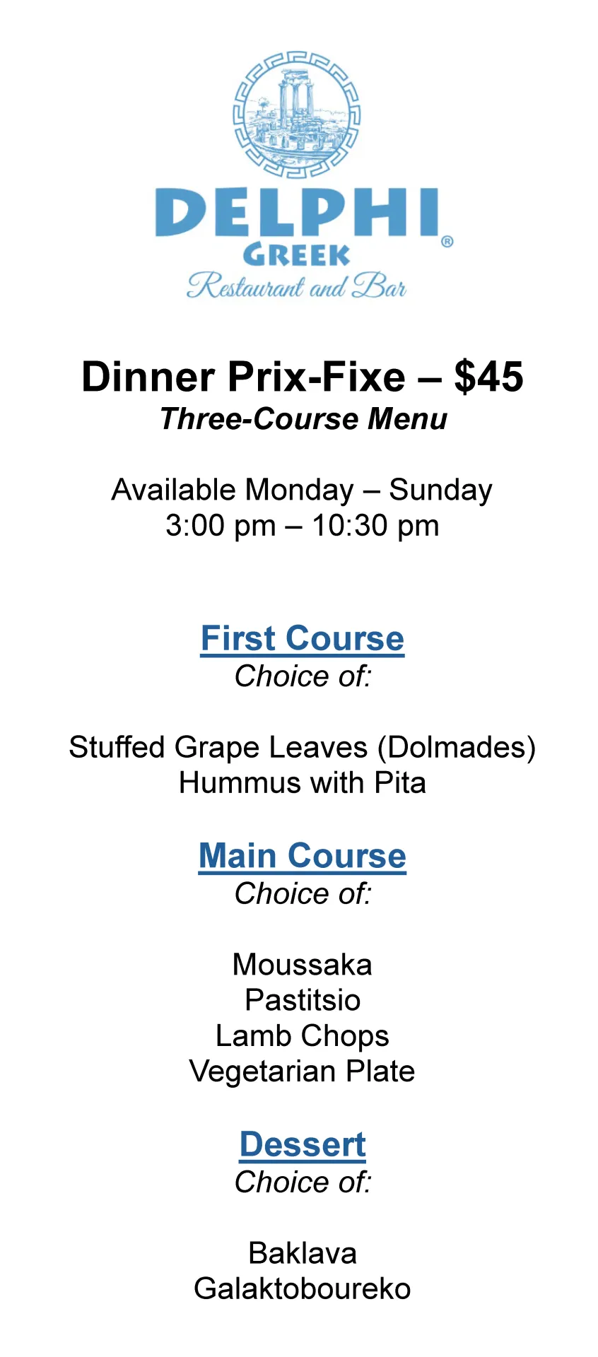 Dinner Menu
