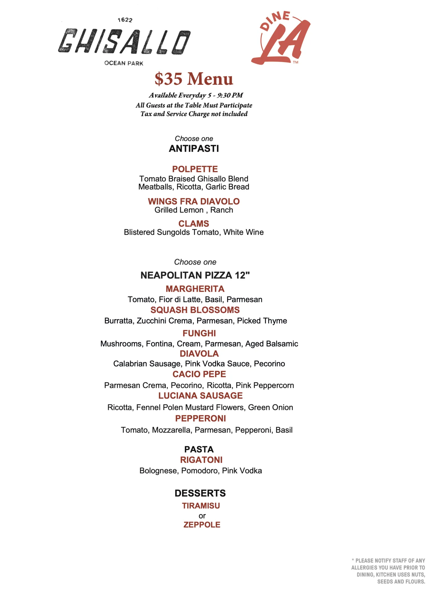 Dinner Menu