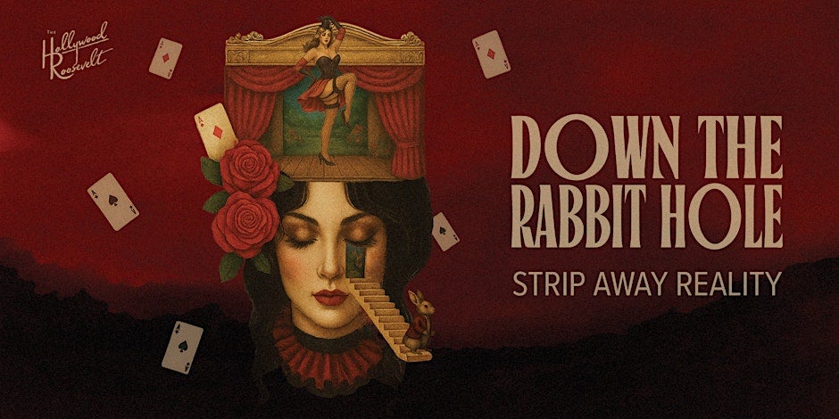 Behind a hidden bookcase in the historic Hollywood Roosevelt lies Down the Rabbit Hole, an immersive cabaret where Wonderland is reborn in the glow of Old Hollywood glamour.