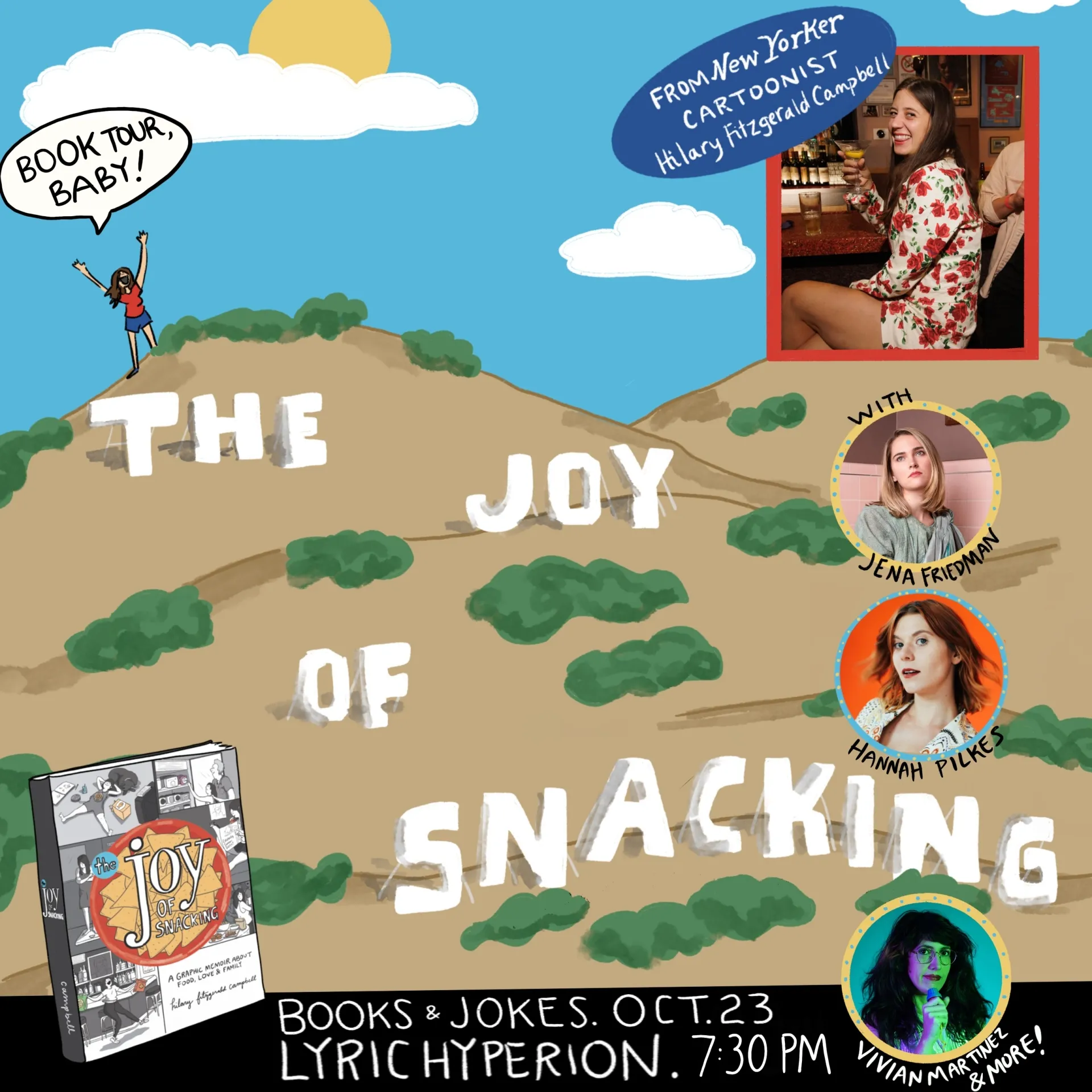 New Yorker cartoonist and comedian Hilary Campbell returns to Los Angeles with her second graphic memoir The Joy of Snacking, a story of food, love and family. To celebrate the book release Campbell is hosting a night of books and jokes with her friends JENA FRIEDMAN (Daily Show, Adult Swim), HANNAH PILKES (Netflix's Leanne) VIVIAN MARTINEZ (El Rey Nation), and LIZZY COOPERMAN (JFL)!