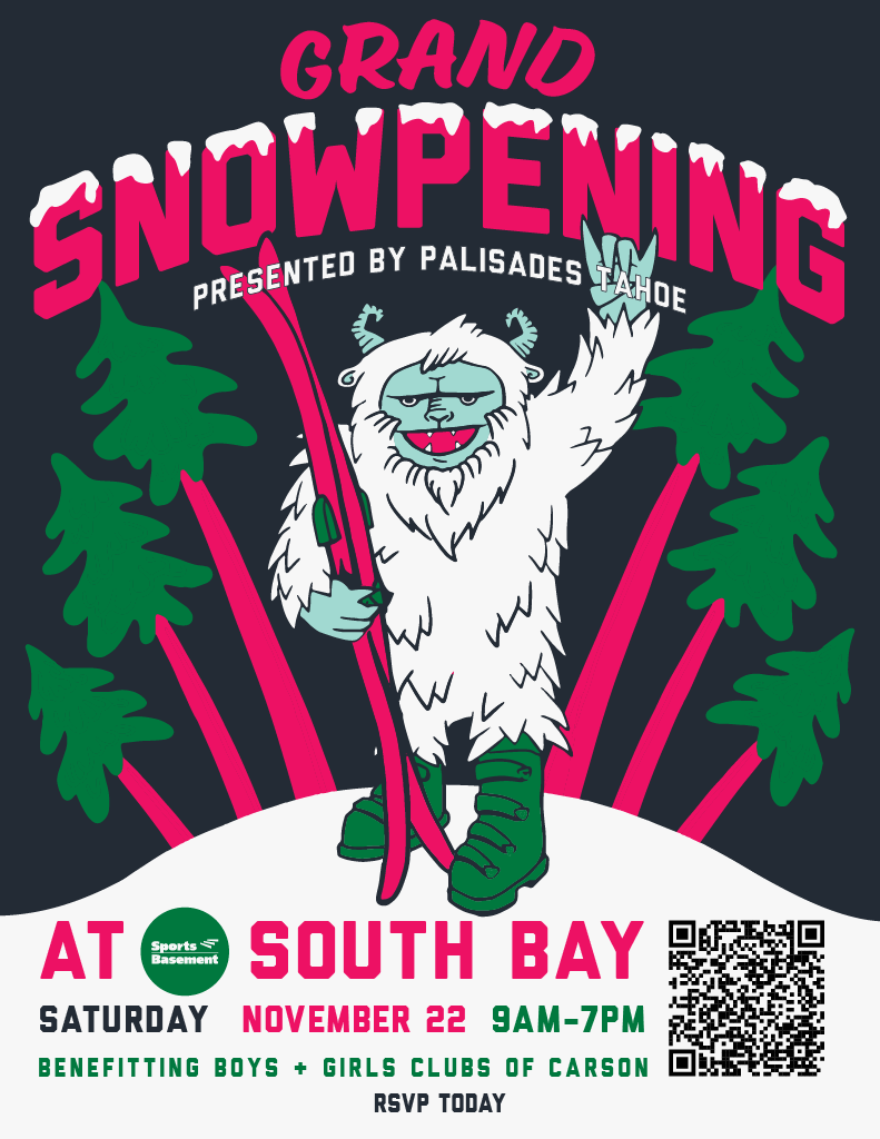 The Grand Snowpening on Saturday, November 22nd, is a celebration of the upcoming snow season and Sports Basement’s arrival in the South Bay. Attendees will enjoy gear giveaways, beer from Hawthorne local favorite Los Angeles Ale Works benefiting The Boys and Girls Clubs of Carson, ski and snowboard vendor representatives, lift ticket deals, and incredible discounts. Tickets are free. This is the biggest snow event you will attend this year! Sports Basement is a community-minded retail sporting goods store with 12 locations in the Bay Area and 3 locations in Southern California, selling brand-name performance apparel and gear for Running, Snow, Camping, Hiking, Cycling, Racket Sports, Soccer, Baseball, and more. Sports Basement stores include full-blown ski, snowboard, and bike shops along with one of the largest rental fleets in the nation; Sports Basement sells and rents it all. Brands include Patagonia, The North Face, HOKA, New Balance, Cannondale, Ibis, Adidas, Speedo, Burton, Atomic, Salomon, K2, Vuori, and so many more! Sports Basement is privately owned and operated and remains committed to their local communities through the Basementeer giveback program, their FREE community spaces, and so much more!