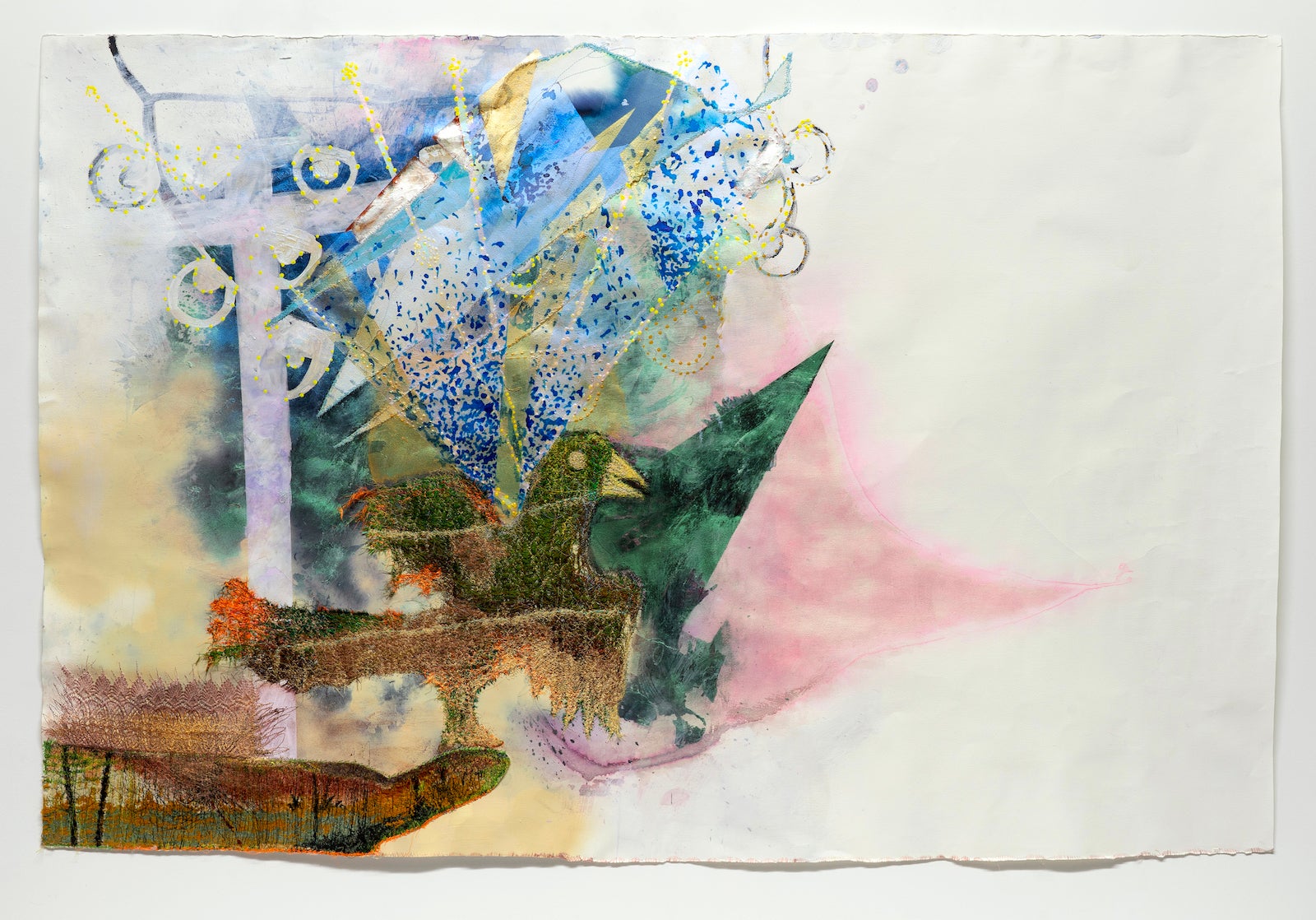 Inherited memory, themes of nurture and intergenerational exchange emerge through Rosas’ response to her young son Fermamdo's drawings. Rosas enlarges and transforms these sketches into monumental, often monstrous, mixed media or charcoal renderings—a process that echoes the distortions and shifts in perspective that shape stories of war as they are retold across generations. As a single parent and cross-border commuter, she extends this inquiry by examining gendered expectations and the culture of warfare embedded in toys marketed along rigid gender lines, revealing how commercial design naturalizes militarized play and scripts early performances of masculinity. Her ongoing research, spanning precolonial toys to contemporary political tensions and liminal border spaces, underscores the persistent entanglement of conflict, storytelling, and the materials of childhood.