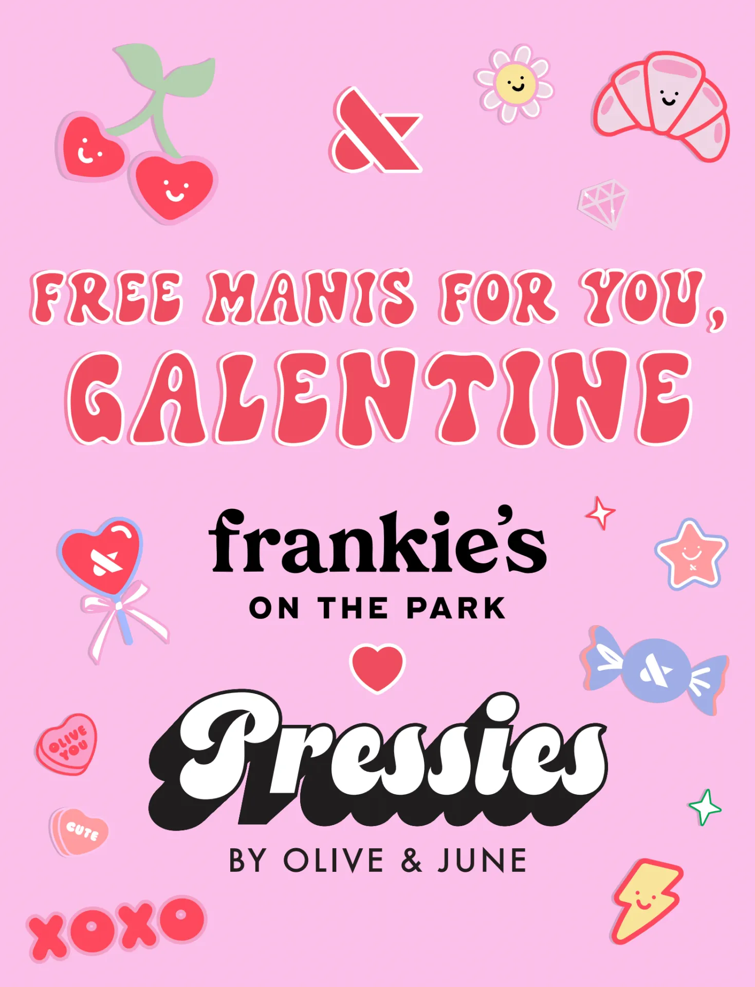 Celebrate Galentine’s Day with a family-friendly mani party hosted by Olive & June and Frankie's on the Park. This one-day pop-in invites moms, kids, and tweens to enjoy complimentary polish changes, playful press-on customization, and exclusive giveaways - while supplies last.