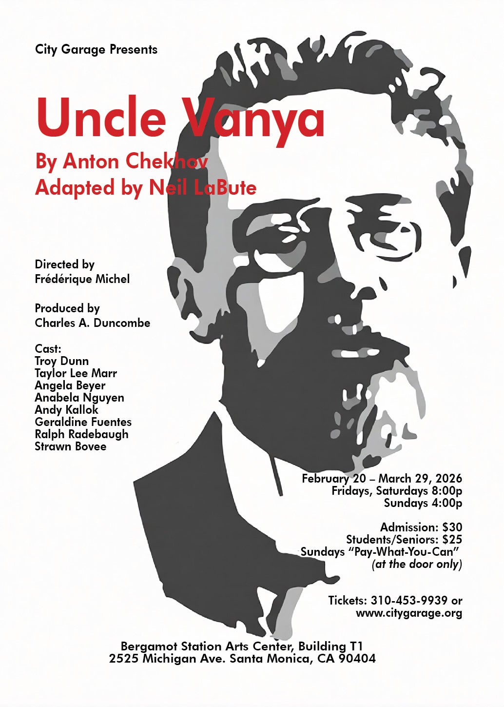 Acclaimed playwright Neil LaBute brings a fresh edge to Chekhov’s tragicomic masterpiece about disillusionment, unrequited love, frustrated passion, and the search for meaning. Set in a rural estate at the end of the 19th century, the lives of Vanya, his niece Sonya, the retired Professor Serebryakov and his young wife Yelena intertwine, leading to complex jealousies, romantic rivalries, and emotional breakdowns as they confront their wasted lives and failed dreams. Vanya and Astrov, a local doctor, both fall in love with Yelena, a spoiled, self-centered beauty; Sonya pines hopelessly for the doctor; while the oblivious Professor disrupts everyone’s lives with his egotistical demands. This classic play, rendered here by LaBute in a new, contemporary version, uses deceptively ordinary dialogue to reveal deep human frailties and a poignant, yet hopeful message about how we find the strength to endure life’s struggles.