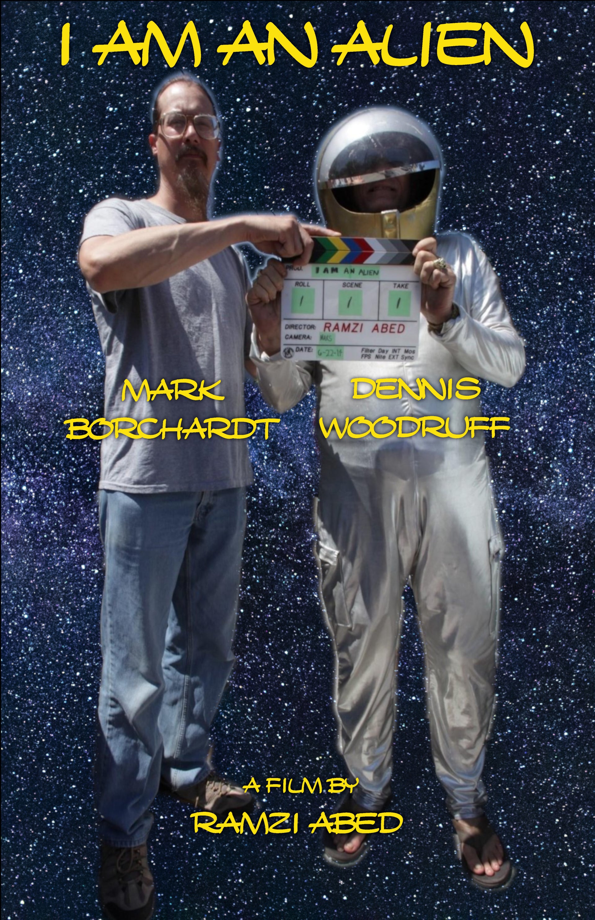The late great patron saint of struggling actors and filmmakers in Hollywood, Dennis Woodruff (Tom Green Show, Cold Creepy Feeling, Spaceman), will be honored and paid tribute to at the big screen theatrical Hollywood premiere of the feature-length documentary (and homage to both "My Dinner With Andre" and political debate shows), "I AM AN ALIEN" directed by award-winning cult filmmaker Ramzi Abed ("First Person Savior", "The Devil's Muse"), which also stars indie film cultural icon, Mark Borchardt ("American Movie", "Coven", "Cabin Fever 2") and pinup model, Sophia Jade ("City Full of Angels") who engage in a deep and often both hilarious and thought-provoking discussion about Hollywood, filmmaking, and the future of America and the artist's place in it and the world at large.